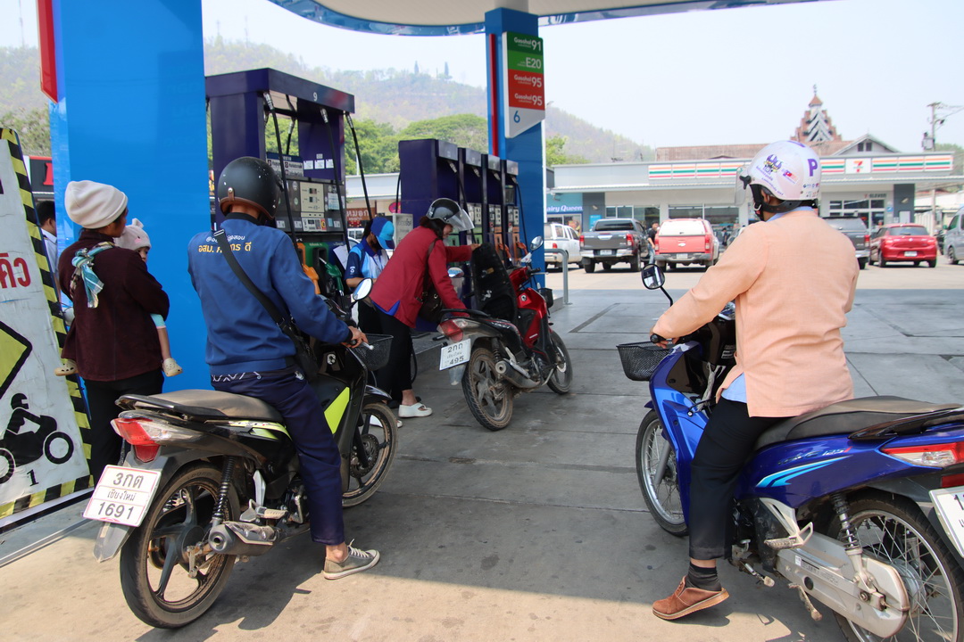 ทั้งนี้ บรรยากาศตามปั๊มน้ำมันในตัวเมืองแม่ฮ่องสอน โดยเฉพาะปั๊ม ปตท. มีการจัดการน้ำมันอย่างจำกัด โดยน้ำมันดีเซลธรรมดาถูกสงวนไว้ให้เฉพาะรถฉุกเฉิน อาทิ รถโรงพยาบาล รถดับเพลิง และหน่วยกู้ภัยเท่านั้น ประชาชนทั่วไปต้องรอเติมในช่วงเย็นหลังเวลา 18.00 น. เมื่อรถขนส่งน้ำมันเดินทางมาถึง ขณะที่กลุ่มน้ำมันเบนซินยังคงมีให้บริการตามปกติ