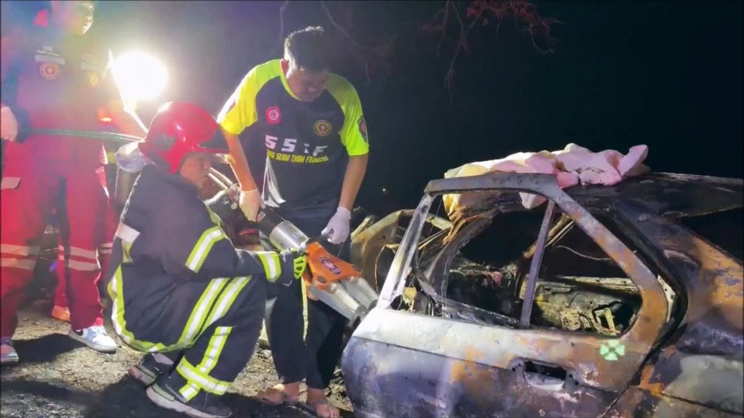ในที่เกิดเหตุ เจ้าหน้าที่ดับเพลิงจาก อบต.พังงู และ อบต.หนองไผ่ พร้อมกู้ภัยส่งเสริมธรรม เร่งระดมฉีดน้ำสกัดเพลิงที่กำลังลุกไหม้รถเก๋งยี่ห้อ BMW อย่างรุนแรงจนวอดเสียหายทั้งคัน หลังเพลิงสงบเจ้าหน้าที่ตรวจสอบภายในรถบริเวณเบาะข้างคนขับ พบร่างผู้เสียชีวิต 1 ราย สภาพถูกไฟคลอกดำเป็นตอตะโกจนไม่สามารถระบุเพศหรือรูปพรรณสันฐานได้ กู้ภัยต้องใช้เครื่องตัดถ่างงัดร่างออกมาอย่างทุลักทุเล