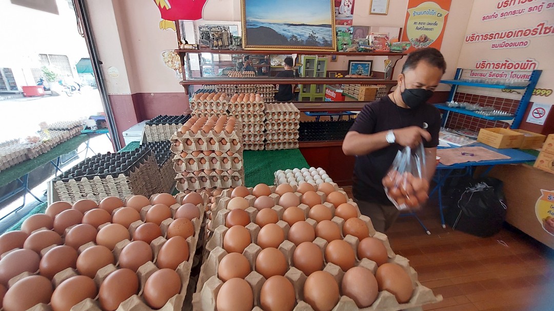 สถานการณ์ที่น่ากังวลที่สุดคือ ไข่ไก่ โดยเฉพาะเบอร์ 3 ที่นิยมในกลุ่มครัวเรือน ปรับขึ้นราคาจากฟองละ 3.60 บาท เป็น 4.20 บาท (แผงละ 6 บาท) ส่วนร้านค้าปลีกบางแห่งราคาพุ่งทะลุฟองละ 5 บาทไปแล้ว สาเหตุมาจากผลผลิตลดลง 3-5% จากอากาศแปรปรวน และต้นทุนวัตถุดิบอาหารสัตว์ เช่น กากถั่วเหลืองและข้าวโพด ที่เริ่มขาดแคลนและมีราคาสูงขึ้นจากภาวะสงครามในตะวันออกกลาง รวมถึงเคมีภัณฑ์นำเข้าที่จำเป็นในการเลี้ยงสัตว์ก็มีราคาสูงขึ้นตามค่าเงินและค่าขนส่ง
