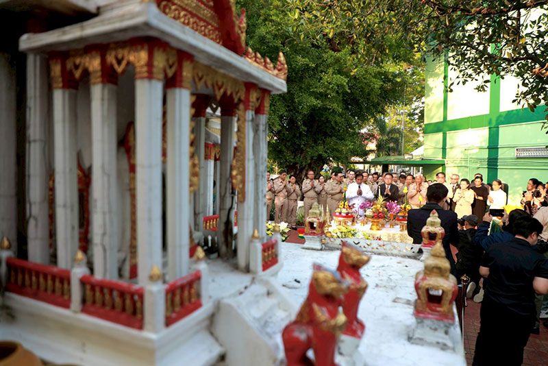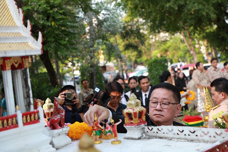 จากนั้น เวลา 07.09 น. ประธานพิธีและคณะไปสักการะพระพุทธประจำกระทรวงศึกษาธิการ สักการะพระภูมิเจ้าที่ สักการะพระพุทธรูปหน้าสำนักงานคณะกรรมการการอาชีวศึกษา สักการะศาลปู่เจียม บวงสรวงพระบรมราชานุสาวรีย์ พระบาทสมเด็จพระมงกุฏเกล้าเจ้าอยู่หัว (ร.6)