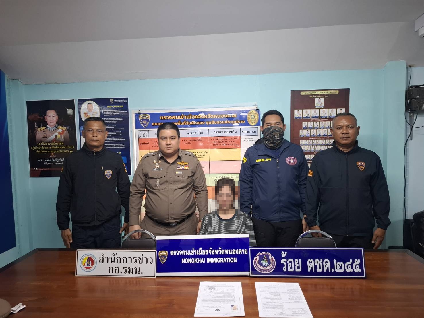 ต่อมาเวลา 09.30 น. ในวันเดียวกัน ตม.จว.หนองคาย ร่วมกับ เจ้าหน้าที่ ปปส.ภาค 4 รับตัว นางสาวศรสวรรค์ (สงวนนามสกุล) อายุ 32 ปี ชาวจังหวัดบึงกาฬ ผู้ต้องหาตามหมายจับศาลจังหวัดสระบุรี ในข้อหาสมคบกันจำหน่ายยาเสพติดรายใหญ่และการกระทำที่ส่งผลกระทบต่อความมั่นคง