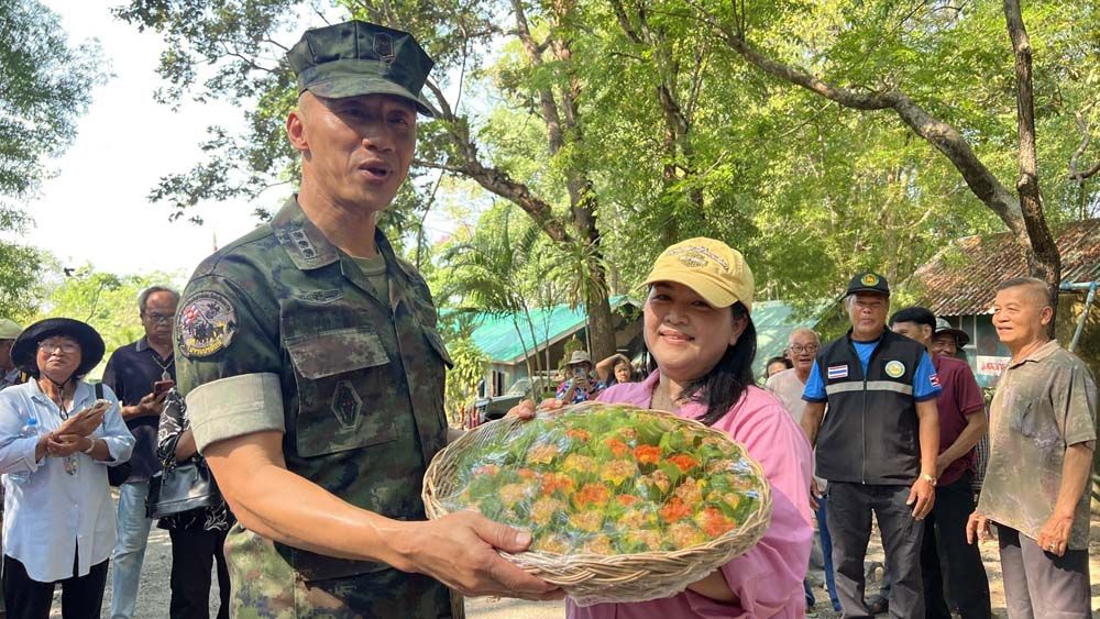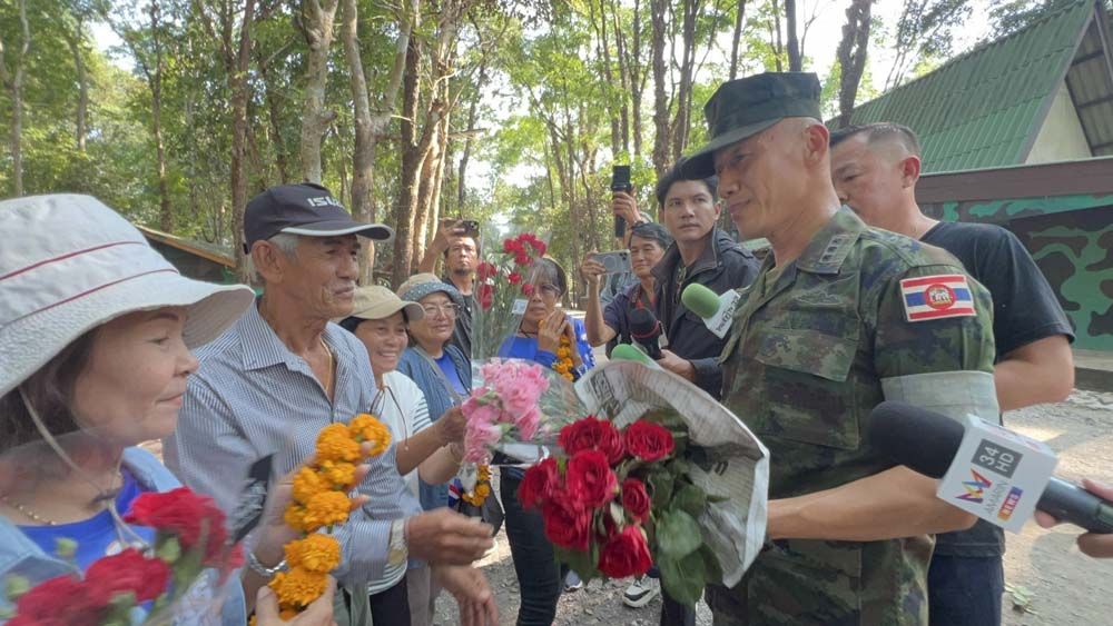ส่วนชาวบ้านได้มอบช่อดอกไม้และขอถ่ายรูป ห้อมล้อมให้กำลังใจ หลายคนร้องไห้ และกล่าวให้กำลังใจ ซึ่งทำให้น.อ.ธรรมนูญ วรรณา ตาแดง และซาบซึ้งใจกับสิ่งที่ได้รับกำลังอย่างมาก