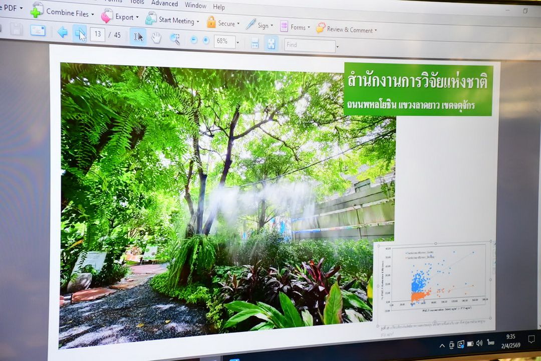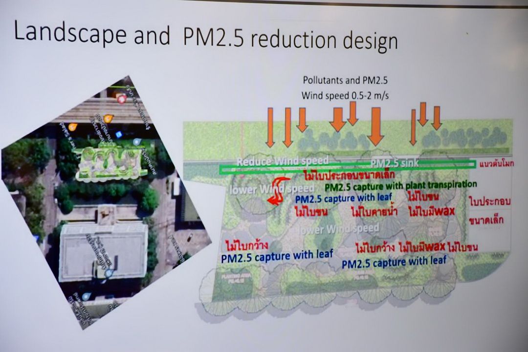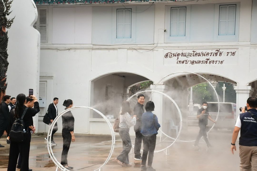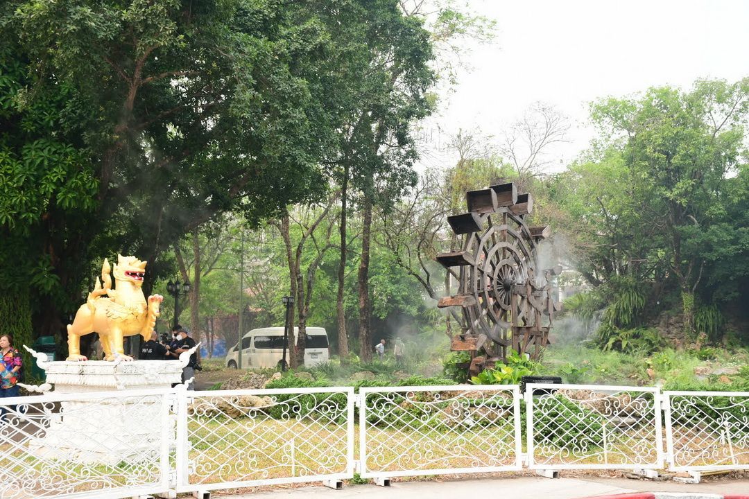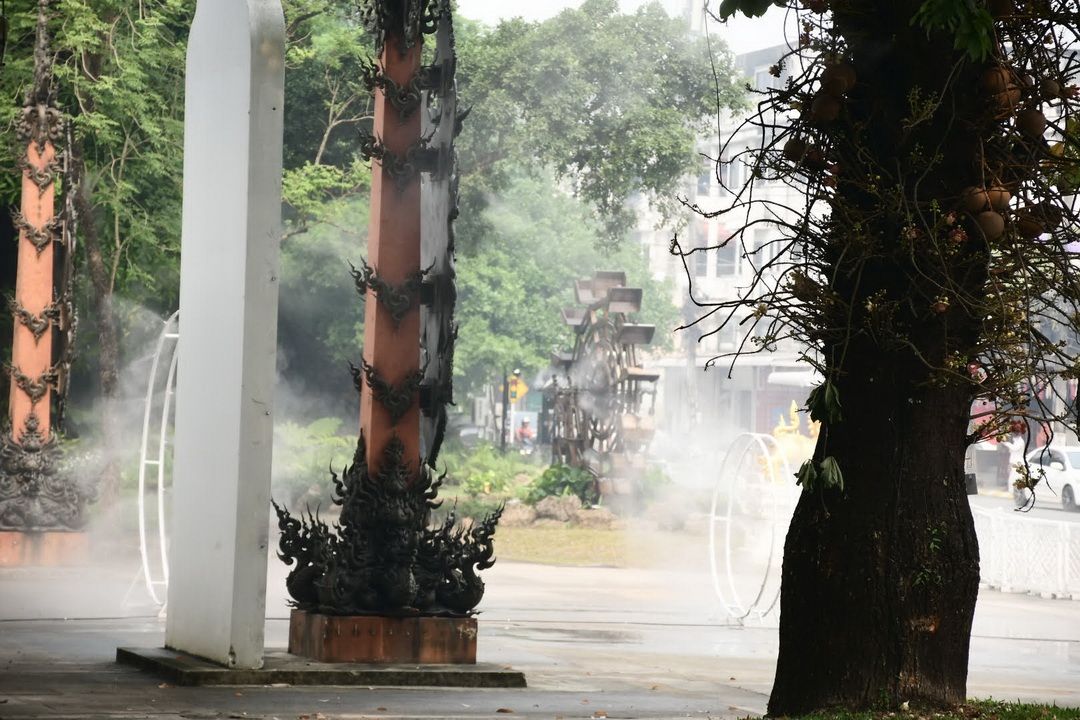 สำหรับพื้นที่สาธารณะกลางเมือง ได้มีการติดตั้งจุดพ่นละอองน้ำภายในสวนตุงและโคมเพื่อดักจับฝุ่นและเพิ่มความชุ่มชื้นในอากาศ โดยตั้งเป้าผลักดันให้เป็น ‘สวนสาธารณะปลอดฝุ่น’ ที่ประชาชนสามารถเข้ามาพักผ่อนและออกกำลังกายได้แม้ในช่วงที่ค่าฝุ่นสูง โดยอนาคตจะมีการนำนวัตกรรมและเทคโนโลยีด้านวิทยาศาสตร์มาบูรณาการเพื่อเพิ่มพื้นที่สีเขียวและการระบายอากาศที่ดียิ่งขึ้น
