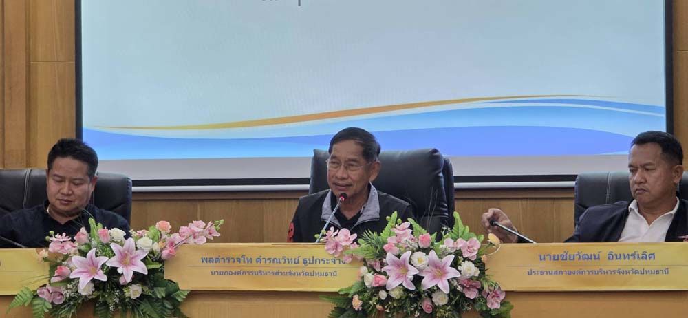 วันที่ 2 เมษายน 2569 พล.ต.ท.คำรณวิทย์ ธูปกระจ่าง นายก อบจ.ปทุมธานี เป็นประธานการประชุมเพื่อหาข้อสรุปมาตรการลดราคาน้ำมันช่วยประชาชน ที่ ห้องประชุมชั้น 5 สำนักงาน อบจ.ปทุมธานี โดยมีผู้เข้าร่วมประชุม อาทิ นายเทพสุริยา สะอาด ท้องถิ่นจังหวัดปทุมธานี นายชาตรี ศรีสันต์ ผู้อำนวยการสำนักงานสมาคมองค์การบริหารส่วนจังหวัดแห่งประเทศไทย ร้อยตำรวจเอก ดร.ตรีลุพธ์ ธูปกระจ่าง นายกเทศมนตรีนครรังสิต คณะผู้บริหารและสมาชิกสภา อบจ.ปทุมธานี หัวหน้าส่วนราชการ อบจ.ปทุมธานี พร้อมด้วยผู้แทนผู้ประกอบการปั๊มน้ำมันในพื้นที่ 317 แห่ง
