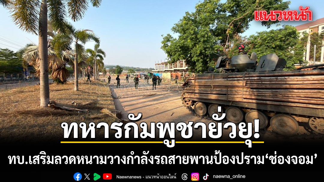 ทบ. เสริมแนวลวดหนามพร้อมวางกำลังรถสายพานป้องปรามบริเวณช่องจอม หลังพบทหารกัมพูชาขาดวินัยเข้ายั่วยุ พร้อมเดินหน้าตามถ้อยแถลงร่วม ยึดแนวการวางกำลัง และใช้กลไก AOT ลงพื้นที่พิสูจน์ข้อเท็จจริง