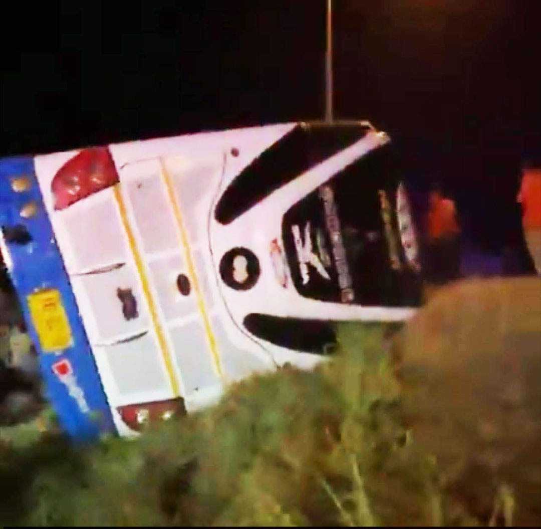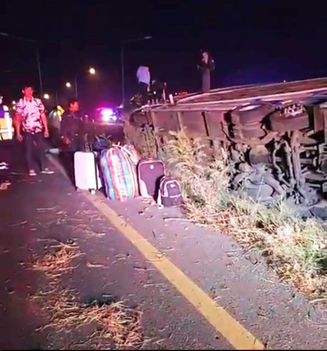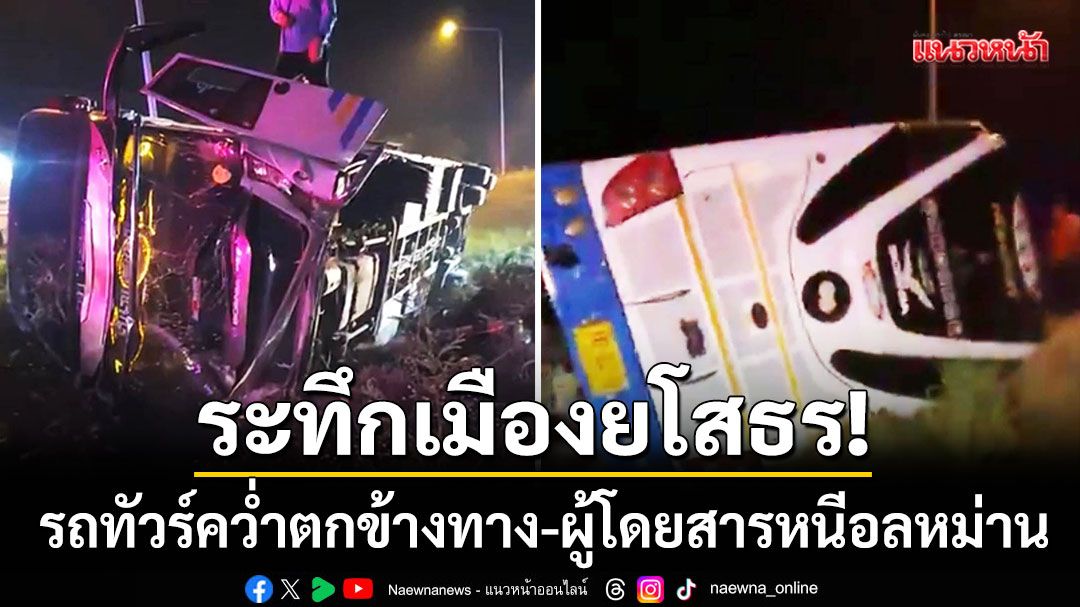 ระทึกเมืองยโสธร! รถทัวร์กรุงเทพฯ-อุบลฯ พลิกคว่ำตกข้างทางถนนแจ้งสนิท ผู้โดยสาร 21 ชีวิตหนีอลหม่าน