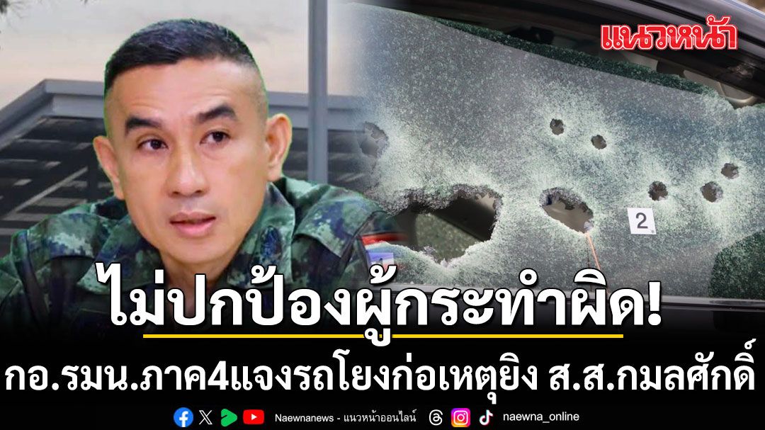 กอ.รมน.ภาค 4 ส่วนหน้า แจงกรณีประเด็นรถต้องสงสัยโยงเหตุยิง สส. ย้ำรอผลสอบจากตำรวจเพื่อความโปร่งใส พร้อมให้ความร่วมมือและไม่ปกป้องผู้กระทำความผิด