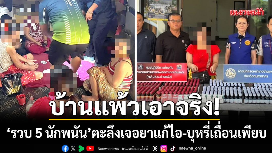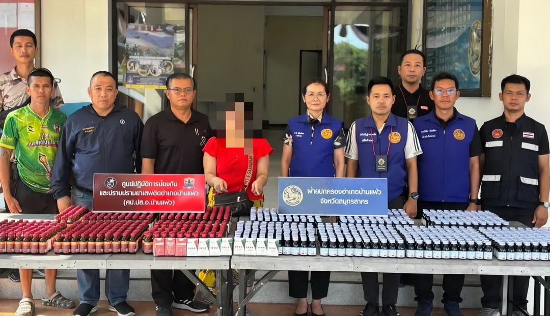 บุกทลายวงไพ่! ฝ่ายปกครองบ้านแพ้วรวบ 5 นักพนัน ตะลึงเจอ ‘ยาแก้ไออันตราย’ ซุกขายกว่า 1.3 พันขวด-บุหรี่เถื่อนเพียบ