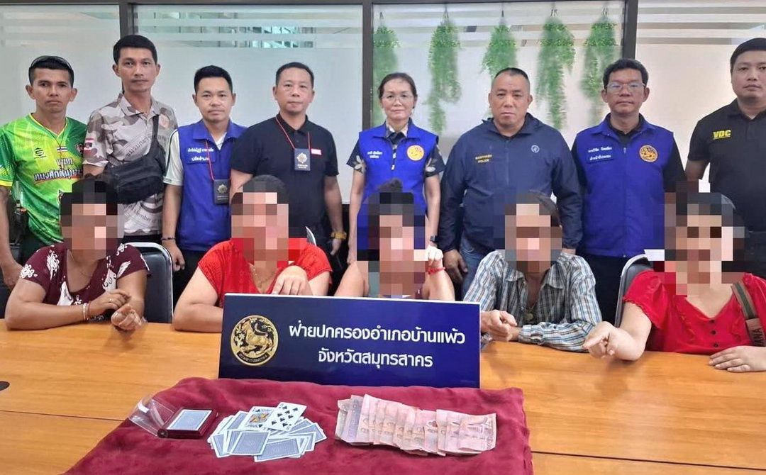 โดย นางสาวภารดี เผือกโสภา นายอำเภอบ้านแพ้ว ได้สั่งการด่วนให้ นายทวีศักดิ์ กฤษณพิพัฒน์ ปลัดอาวุโส นำกำลังเจ้าหน้าที่ฝ่ายปกครองประสานความร่วมมือกับเจ้าหน้าที่ตำรวจ สภ.บ้านแพ้ว และผู้ใหญ่บ้านหมู่ 5 ลงพื้นที่ตรวจสอบทันที เมื่อไปถึงพบกลุ่มนักพนันกำลังล้อมวงเล่นไพ่กันอย่างสนุกสนาน เจ้าหน้าที่จึงแสดงตัวเข้าจับกุมได้ผู้ต้องหาทั้งหมด 5 ราย โดยในจำนวนนี้พบเป็นแรงงานต่างด้าวลักลอบเข้าเมืองโดยผิดกฎหมาย 1 ราย พร้อมยึดของกลางเงินสด 2,600 บาท และไพ่ป๊อก 2 สำรับ