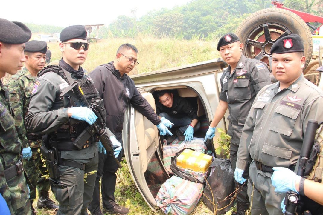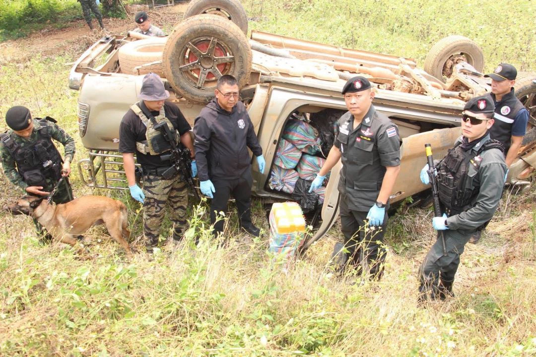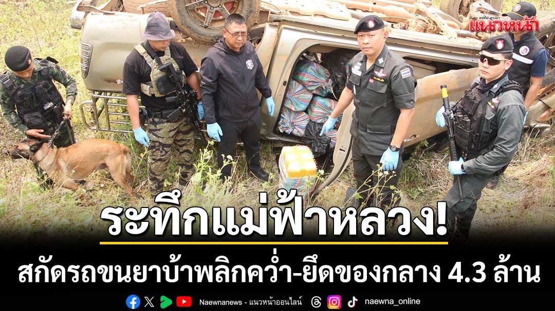 ระทึกแม่ฟ้าหลวง! ตชด.ภาค 3 ผนึกผาเมืองสกัดกระบะขนยาบ้าพลิกคว่ำ ยึดของกลาง 4.3 ล้านเม็ด คนร้ายยิงสู้ก่อนหนีเข้าป่า