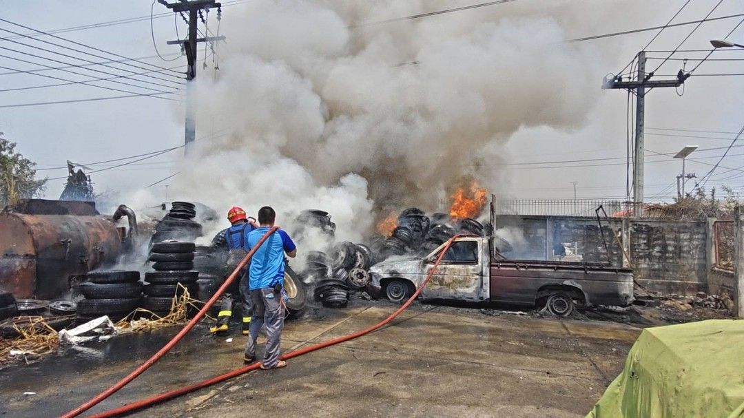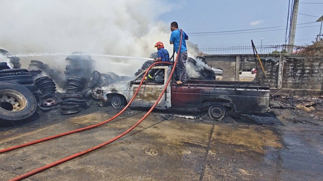 วันที่ 4 เม.ย. 69 ร.ต.ท.อนุสรณ์ เวียงสิมา รอง สว.(สอบสวน) สภ.คลองหลวง รับแจ้งเหตุเพลิงไหม้กองยางรถยนต์และรถยนต์ บริเวณพื้นที่ว่างด้านหลังศูนย์อะไหล่เซียงกงรังสิต ต.คลองหนึ่ง อ.คลองหลวง จ.ปทุมธานี จึงรุดไปตรวจสอบพร้อมเจ้าหน้าที่ตำรวจสายตรวจ รถดับเพลิงจากเทศบาลเมืองคลองหลวงและพื้นที่ใกล้เคียง รวมถึงเจ้าหน้าที่มูลนิธิร่วมกตัญญู