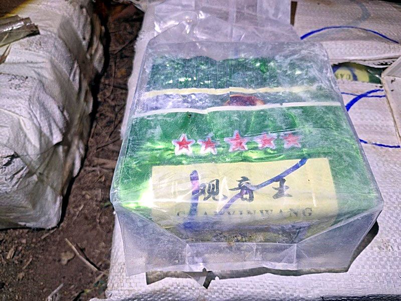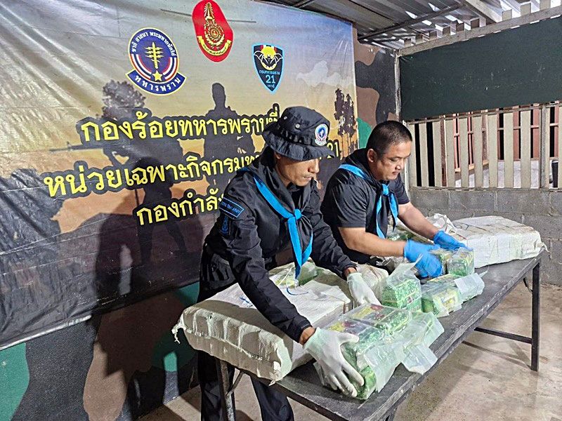 ส่วนที่ริมแม่น้ำโขงทหารพรานเข้าเคลียร์พื้นที่ พบกระสอบป่านสีขาวจำนวน 2 กระสอบ ภายในบรรจุยาไอซ์แพคอยู่ในถุงชาสีทองกระสอบละ 30 ถุงๆละประมาณ 1 กิโลกรัมรวม 60 กิโลกรัม จึงได้ดำเนินการขนย้ายมายัง บก.ร้อย.ฉก.ทพ.2101 บ้านปากห้วยม่วง ต.นาเข เพื่อทำการตรวจนับอย่างละเอียดอีกครั้ง