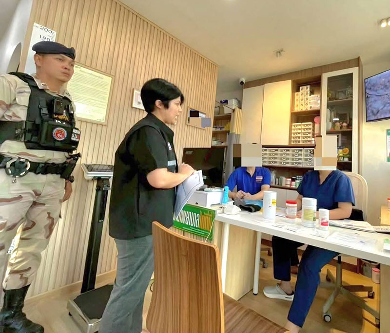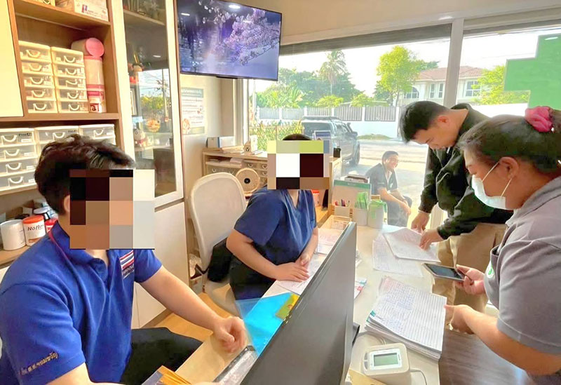 เมื่อไปถึงเจ้าหน้าที่ได้เข้าทำการตรวจสอบพบว่าคลินิกดังกล่าว มีพนักงาน และเจ้าหน้าที่นั่งอยู่ภายในคอยรับคนไข้คอยบริการประชาชน โดยมีการรับรักษาคนไข้ มีการกระทำความผิดชัดเจนดังนี้