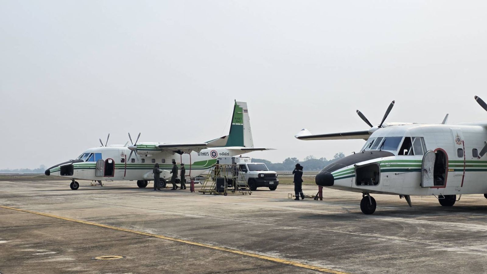 ฝนหลวงฯ ลุยแก้ หมอกควัน ส่งเครื่องบิน 7 ลำ ปฏิบัติการบิน สเปรย์น้ำ-โปรยน้ำแข็งแห้ง ระบายฝุ่นต่อเนื่อง เลี้ยงเมฆ เร่งทำฝนตกพื้นที่เป้าหมายเพิ่ม