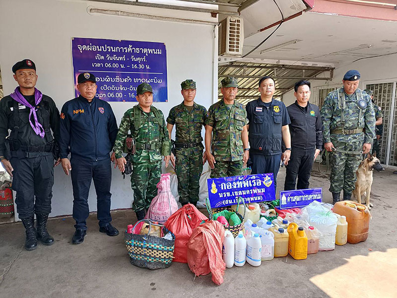 6 เมษายน 2569 เวลา 08.00 น. น.อ.ปุณณรัตน์ ถมคำ รักษาราชการหัวหน้าสถานีเรือธาตุพนม (รรก.หน.สน.เรือธาตุพนม) หน่วยเรือรักษาความสงบเรียบร้อยตามลำแม่น้ำโขง เขตนครพนม (นรข.เขตฯ) พร้อมกำลังชุดลาดตระเวนริมแม่น้ำโขง ออกเฝ้าตรวจบริเวณจุดผ่อนปรนตลาดการค้าไทย-ลาว อ.ธาตุพนม จ.นครพนม พบคนกลุ่มหนึ่งพยายามนำน้ำมันเชื้อเพลิงใส่แกลลอนเล็ก เพื่อเตรียมขนลงเรือข้ามฝั่งไปยังประเทศ สปป.ลาว เจ้าหน้าที่จึงเข้าทำการตรวจสอบทันที กลุ่มคนดังกล่าวอาศัยช่วงประชาชนมาจับจ่ายสินค้าเป็นจำนวนมากหลบหนีไป