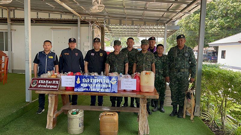 ยึดน้ำมันดีเซล-เบนซิน ซุกพงหญ้าตลาดนัดไทยลาว อ.ธาตุพนม เตรียมขนลงเรือข้ามโขง ลักลอบออกนอกประเทศ