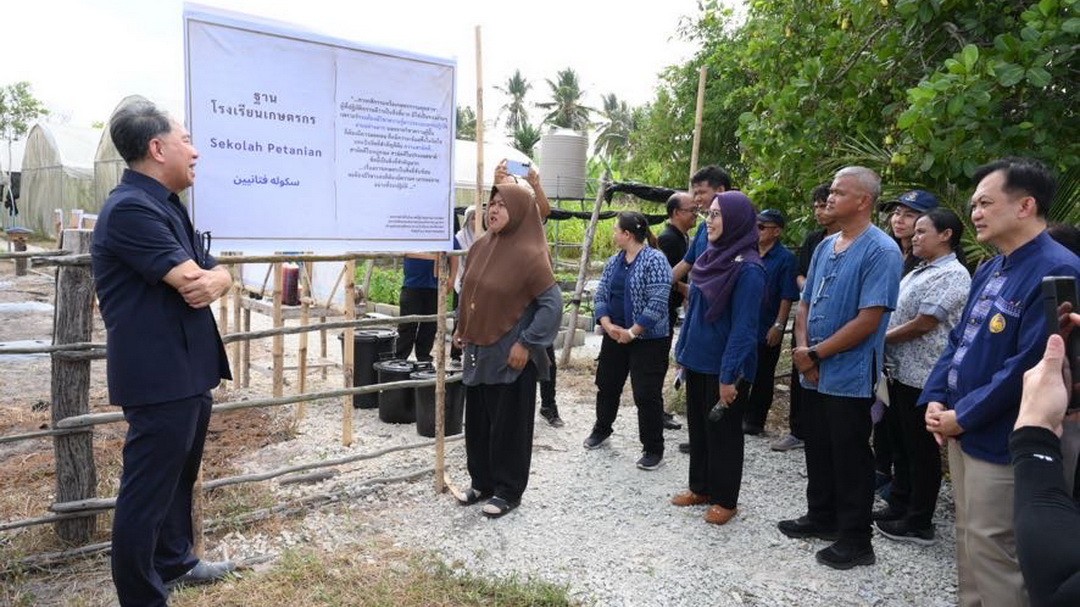 ไฮไลต์สำคัญอยู่ที่ 2 ชุมชนปลายด้ามขวาน ได้แก่ 1.บ้านโคกยามู จ.นราธิวาส ที่สามารถสยบดินเปรี้ยวด้วยเกษตรปลอดภัย จากอดีตที่เผชิญปัญหาน้ำท่วมซ้ำซากและดินเปรี้ยวจัด (pH 3) จนเพาะปลูกไม่ได้ ปัจจุบันบ้านโคกยามูประสบความสำเร็จในการปรับปรุงดินจนสามารถปลูก ‘แตงโม GAP’ สร้างรายได้สะสมเกือบ 10 ล้านบาท ทำให้ผลผลิตเพิ่มขึ้นเกือบเท่าตัวจากปี 2563 นอกจากนี้ยังส่งเสริมกลุ่มสตรีและผู้สูงอายุสานกระจูดสร้างรายได้เสริมกว่า 1.1 ล้านบาท และที่สำคัญคือคนรุ่นใหม่เรียนจบปริญญาตรีเพิ่มขึ้นกว่า 2 เท่า สะท้อนถึงคุณภาพชีวิตที่ดีขึ้นอย่างชัดเจน