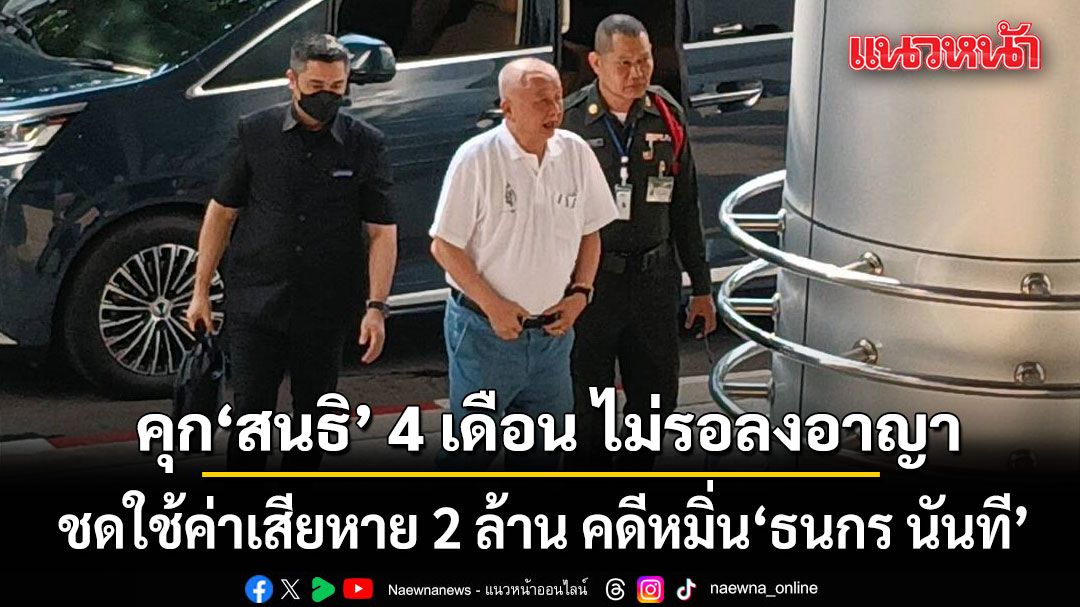 ศาลสั่งจำคุก สนธิ 4 เดือน ไม่รอลงอาญา ชดใช้ค่าเสียหาย 2 ล้าน หมิ่นธนกร นันที ปมทุจริต 5 โครงการที่ดินปลูกปาล์มน้ำมันอินโดฯ