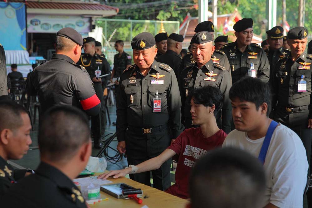 ในการนี้ เสนาธิการทหารบกได้ตรวจเยี่ยมและติดตามขั้นตอนการดำเนินการตรวจเลือกในแต่ละขั้นตอนอย่างใกล้ชิด ซึ่งเป็นไปด้วยความเรียบร้อย โดยมียอดทหารกองเกินที่ต้องเข้ารับการตรวจเลือกจำนวน 340 นาย ขณะที่ยอดความต้องการผู้สมัครใจเข้ารับราชการทหารกองประจำการอยู่ที่ 36 นาย และมีผู้สมัครใจแล้วจำนวน 6 นาย