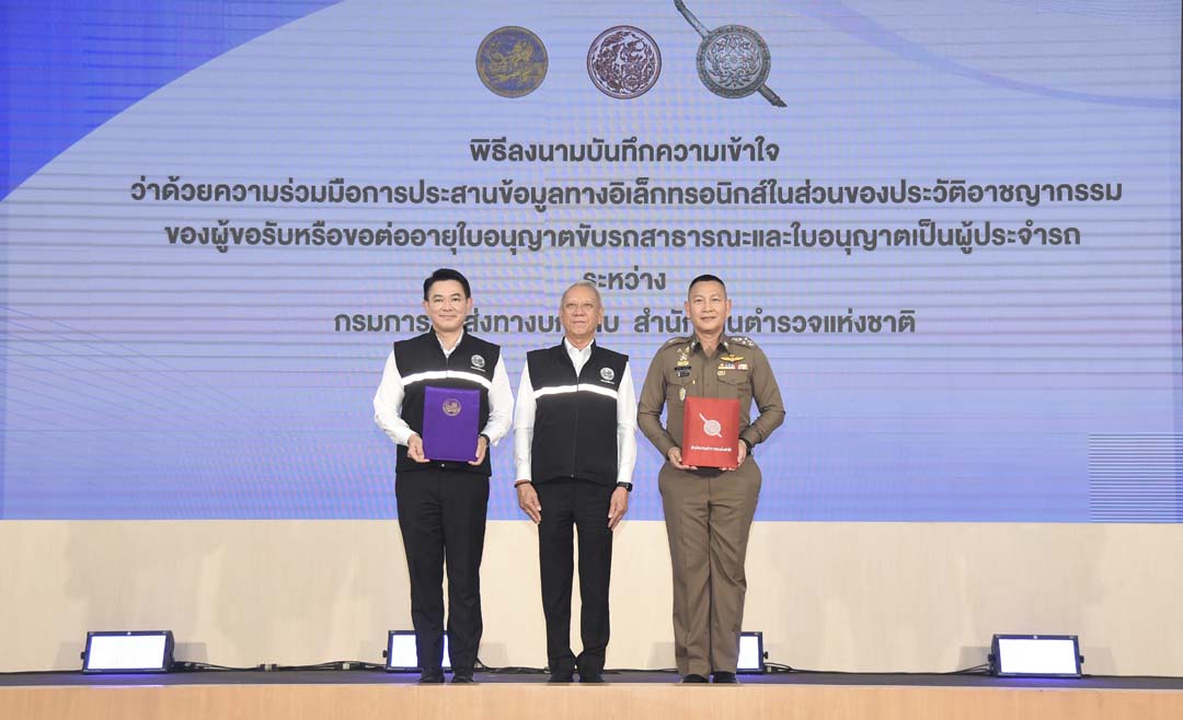 สำนักงานตำรวจแห่งชาติลงนาม MOU ร่วมกับกรมการขนส่งทางบก เชื่อมโยงข้อมูลประวัติอาชญากรรมทางอิเล็กทรอนิกส์ สำหรับรถสาธารณะ รถขนส่ง ยกระดับความปลอดภัยทางถนน เทศกาลสงกรานต์