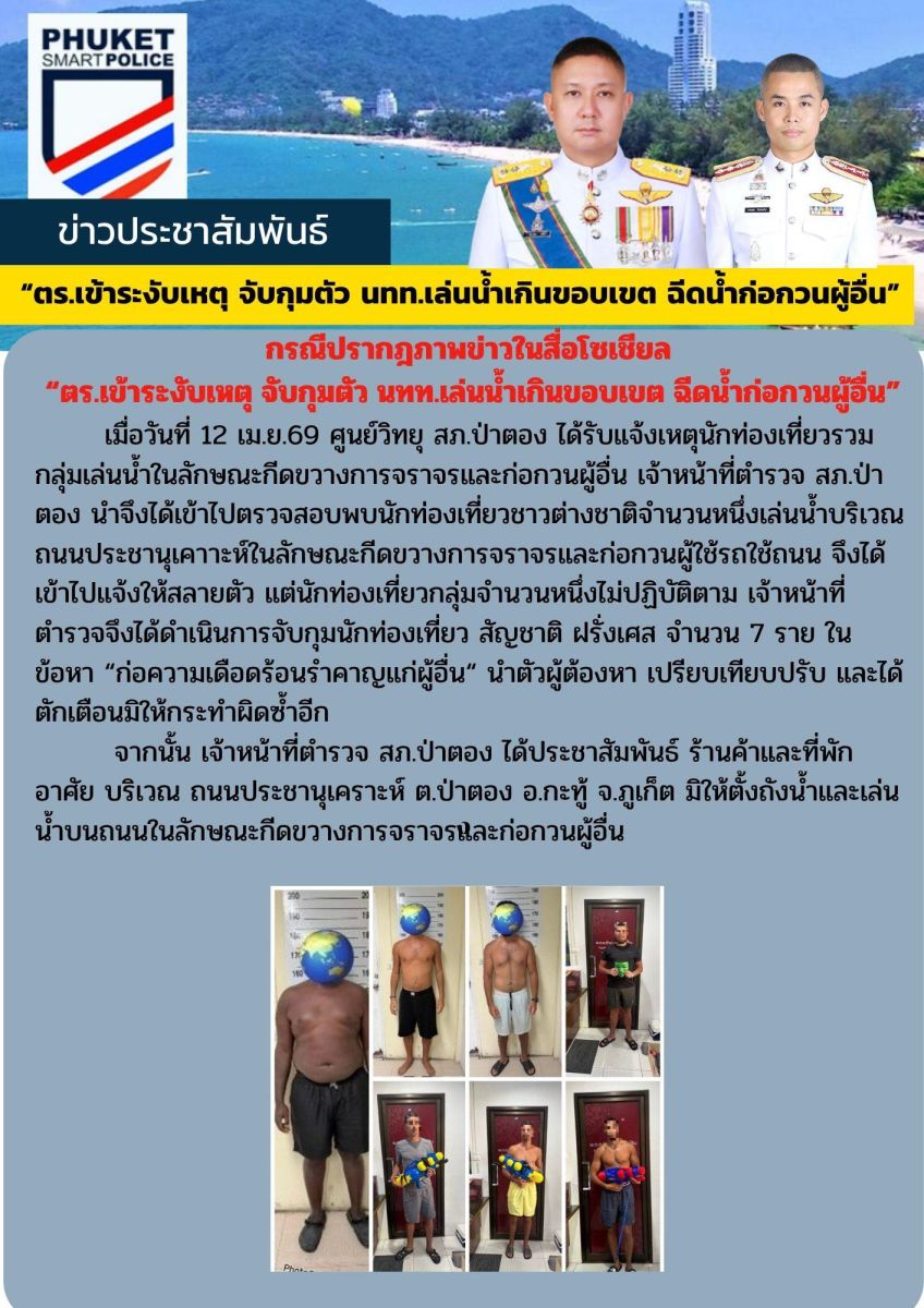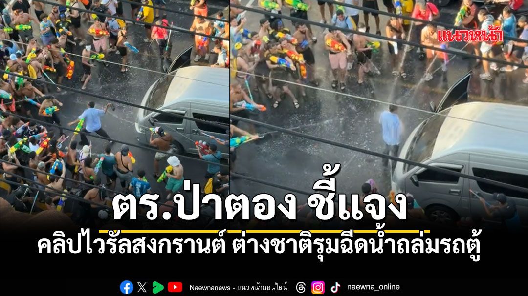 14 เมษายน 2569 ผู้สื่อข่าวรายงานความคืบหน้ากรณีโลกออนไลน์แชร์คลิปเหตุการณ์ความวุ่นวายในพื้นที่หาดป่าตอง จ.ภูเก็ต ซึ่งปรากฏภาพกลุ่มนักท่องเที่ยวต่างชาติจำนวนมากใช้ปืนฉีดน้ำแรงดันสูงรุมฉีดใส่คนขับรถตู้ และมีการพยายามเปิดประตูรถเพื่อฉีดน้ำซ้ำ จนเกิดคำถามถึงความปลอดภัยและขอบเขตของการเล่นสงกรานต์นั้น