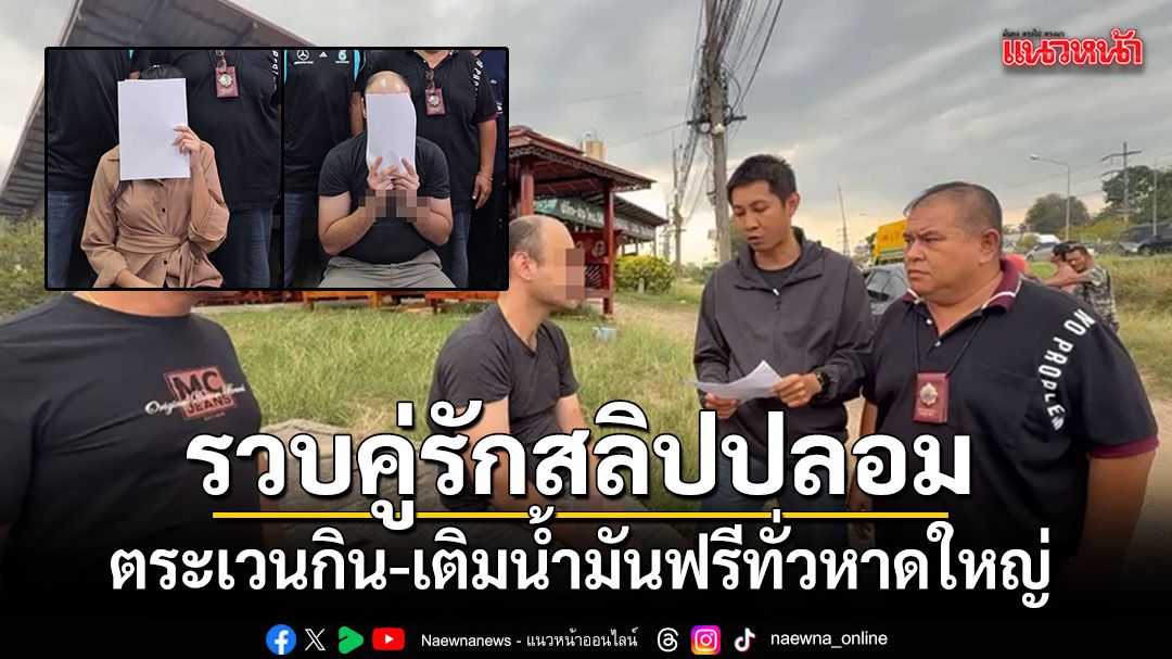 ตำรวจสืบสวน สภ.หาดใหญ่ โชว์ผลงานสกัดจับสองสามีภรรยาแสบ ใช้กลอุบายตัดต่อสลิปโอนเงินปลอม หลอกเติมน้ำมันและกินก๋วยเตี๋ยวฟรีทั่วพื้นที่ ก่อนจนมุมขณะขับรถหนีการจับกุม ตรวจสอบประวัติพบก่อเหตุโชกโชน ล่าสุดเพิ่งไปอาละวาดที่จังหวัดพัทลุง