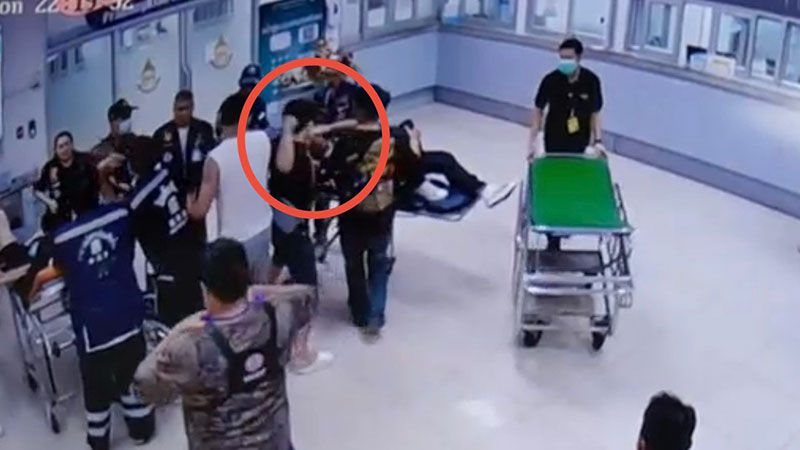 ภาพจากกล้องวงจรปิดภายในห้องคัดกรองผู้ป่วย แผนกฉุกเฉิน รพ.พระนั่งเกล้า บันทึกภาพเมื่อเวลา 22.18 น. เจ้าหน้าที่อาสาสมัครมูลนิธิป่อเต็กตึ้งได้นำผู้บาดเจ็บ เป็นชายเสื้อลาย นั่งรถเข็นเข้าไปที่จุดซักประวัติ จากนั้นเจ้าหน้าที่กู้ภัยได้เข็นนายอมร ที่นอนอยู่บนเตียงแบบเข็นเข้าไปจอดที่จุดซักประวัติคู่กัน ผ่านไปซักพักหนุ่มเสื้อลายได้ลุกจากรถเข็นแล้วต่อยไปที่นายอมร 1 ครั้ง และกำลังจะต่อยครั้งที่ 2 เจ้าหน้าที่กู้ภัยได้ห้ามไว้ทัน ขณะที่หนุ่มเสื้อลายลงมือต่อยนายอมร ได้มีชายสวมแว่นตา สวมเสื้อยืดสีดำ กางเกงขาสั้นสีดำ สะพายกระเป๋า เดินอ้อมหลังกู้ภัยพุ่งเข้าไปชก นายอมร จำนวน 2 ครั้ง ก่อนที่กู้ภัยจะห้ามไว้ ซึ่งขณะเกิดเหตุพยาบาลที่ทำการซักประวัติต้องเดินเข้าไปหลบในห้องด้านข้างเกรงว่าจะถูกลูกหลง