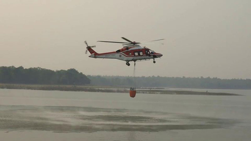 17 เมษายน 2569 เฮลิคอปเตอร์ของกรมอุทยานแห่งชาติ สัตว์ป่า และพันธุ์พืช ถูกนำมาใช้สนับสนุนภารกิจอย่างต่อเนื่อง ด้วยการตักน้ำจากอ่างเก็บน้ำทับเสลา อ.ลานสัก จ.อุทัยธานี บรรทุกไปโปรยตามแนวไฟป่าที่กำลังลุกลามหนัก โดยเฉพาะพื้นที่ใกล้หน่วยพิทักษ์ป่าวังไผ่ ซึ่งมีสภาพภูมิประเทศเป็นภูเขาสูงสลับซับซ้อน ทำให้การเข้าดับไฟป่า เดินเท้าชุดเสือไฟเป็นไปอย่างยากลำบาก จำเป็นต้องใช้เฮลิคอปเตอร์ช่วยลดความร้อนแรงของไฟป่าทีกำลังลุกล่าม ท่ามกลางบรรยากาศทีร้อนจัด