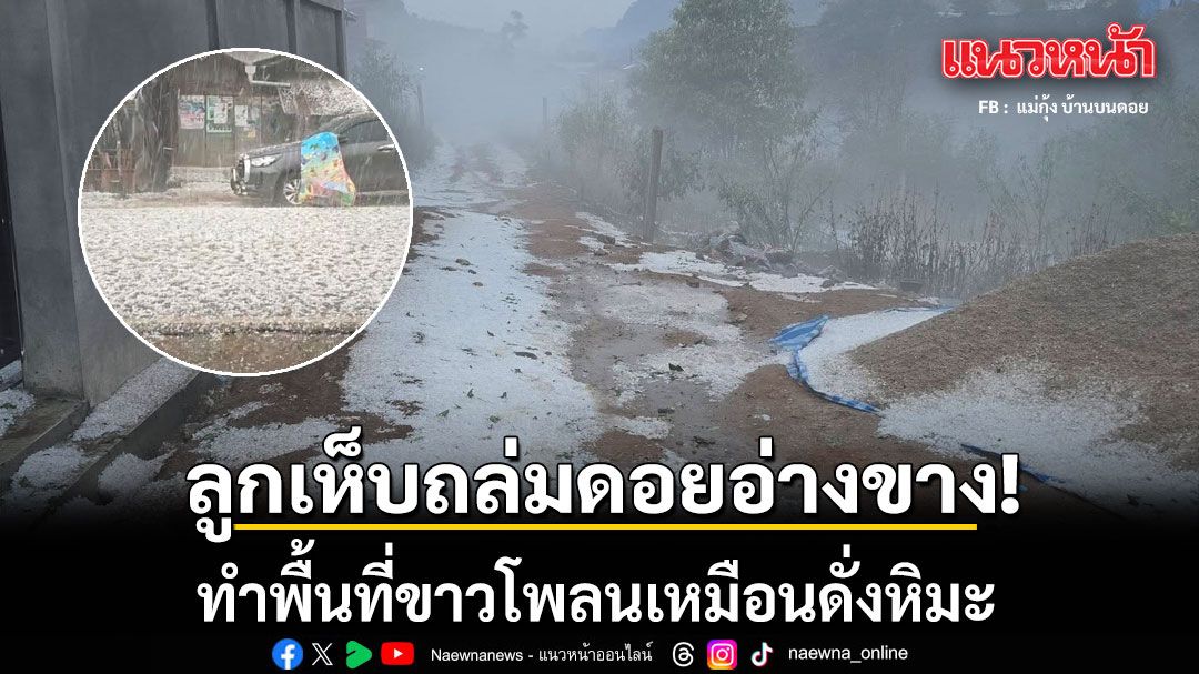 วันที่ 18 เมษายน 2569 เมื่อเวลา 16.30 น. พื้นที่ ดอยอ่างขาง อ.ฝาง จ.เชียงใหม่ เกิดเหตุฝนตกหนักลมแรง และลูกเห็บตกหนัก จนพื้นขาวโพลนไปทั่วบริเวณ