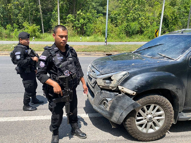 คนร้ายลอบวางระเบิดรถหุ้มเกราะชุด รปภ. ผบ.ฉก.ทพ.33 บนถนนสาย 410 ยะลา - เบตง บาดเจ็บ 7 ราย