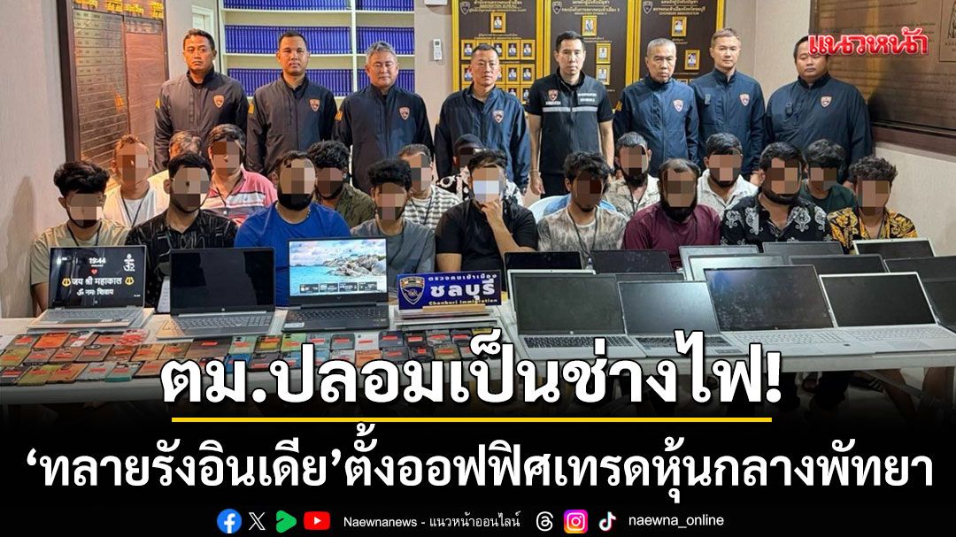 ตม.ชลบุรี ปลอมเป็นช่างไฟ! ทลายรังอินเดีย 30 ราย ตั้งออฟฟิศเทรดหุ้นกลางเมืองพัทยา พบเงินหมุนสะพัดเดือนละ 30 ล้านบาท