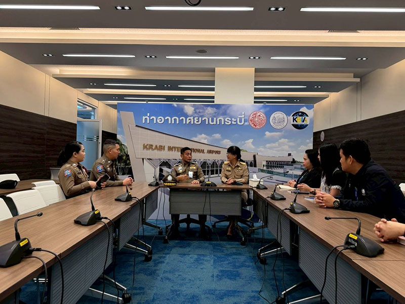 พร้อมกันนี้ ได้ลงพื้นที่พบปะนักท่องเที่ยวภายในท่าอากาศยานกระบี่ เพื่อสร้างความเชื่อมั่นด้านความปลอดภัย และประชาสัมพันธ์ แอปพลิเคชัน Thailand Tourist Police ซึ่งเป็นช่องทางให้ความช่วยเหลือและติดต่อเจ้าหน้าที่ได้ตลอด 24 ชั่วโมง