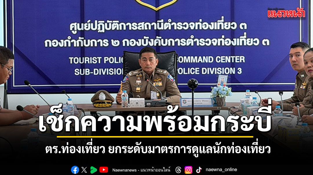วันที่ 21 เมษายน 2569 เวลา 10.30 น. พล.ต.ต.พงษ์สยาม มีขันทอง รองผู้บัญชาการตำรวจท่องเที่ยว ลงพื้นที่จังหวัดกระบี่ เป็นประธานการประชุมหารือร่วมกับหน่วยงานที่เกี่ยวข้องและผู้ประกอบการท่องเที่ยว เพื่อขับเคลื่อนมาตรการยกระดับการดูแลความปลอดภัยและการอำนวยความสะดวกแก่นักท่องเที่ยวทั้งชาวไทยและชาวต่างชาติ