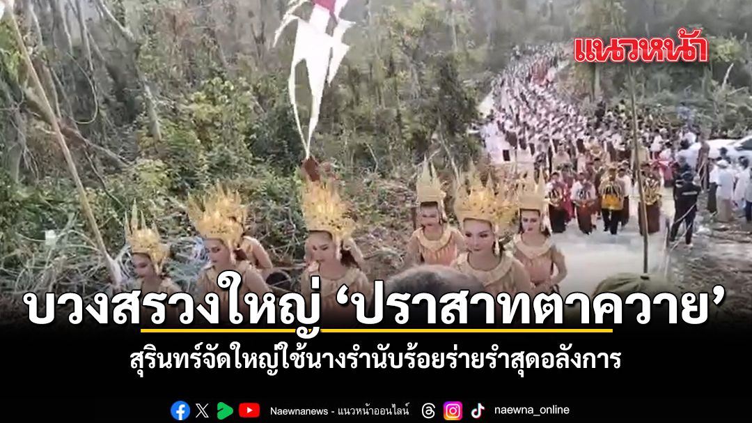 เริ่มกันที่ภาพบรรยากาศตั้งแต่เวลา 06.30 น. ที่ผ่านมา ณ ปราสาทตาควาย ตำบลบักได อำเภอพนมดงรัก จังหวัดสุรินทร์ พลังศรัทธาของชาวบ้านทั้งในพื้นที่และจังหวัดใกล้เคียง ต่างหลั่งไหลมาร่วมพิธีบวงสรวงองค์ปราสาท และพิธีวางพวงมาลา ณ อนุสาวรีย์พิทักษ์ไทย เพื่อระลึกถึงวีรกรรมความกล้าหาญ ไฮไลท์สำคัญอยู่ที่ขบวนแห่อันวิจิตรงดงาม และกองทัพนางรำกว่าหลายร้อยชีวิต ที่พร้อมใจกันสวมชุดพื้นเมืองมาร่วมร่ายรำถวายอย่างอ่อนช้อยสะดุดตา บริเวณหน้าปราสาทหินเก่าแก่ สร้างความตื่นตาตื่นใจให้กับผู้ร่วมงานเป็นอย่างมาก