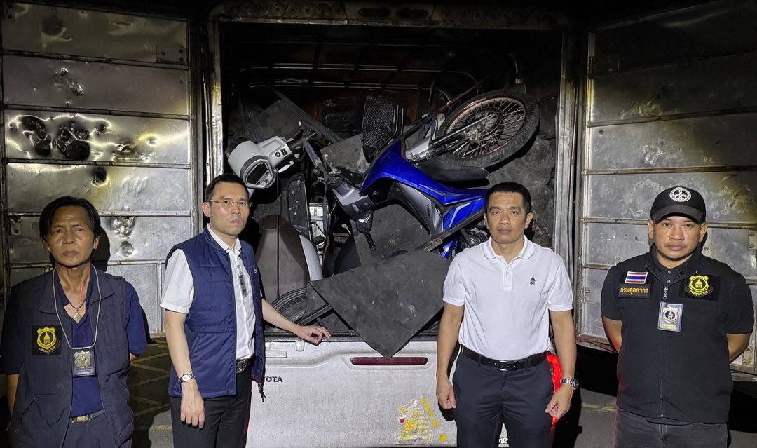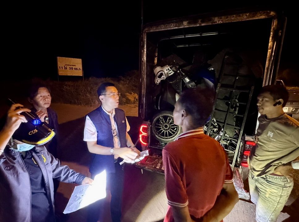 นายประสิทธิ์ กล่าวว่าเมื่อวันที่ 21 เม.ย. 69 เวลา 23.55 น. ขณะนำรถตรวจการณ์ออกลาดตระเวนและสุ่มตรวจรถขนส่งประเภทต่างๆบนถนนทางหลวงสาย 24 ที่ อ.โชคชัย จ.นครราชสีมา จนกระทั่งพบกลุ่มรถกระบะตู้ทึบ 3 คันไม่ติดแผ่นป้ายทะเบียน ขับด้วยความเร็วสูงน่าหวาดเสียว สังเกตจากภายนอกพบมีลักษณะการบรรทุกที่มีน้ำหนักเยอะอยู่ภายในจึงมีเหตุต้องสงสัยว่าอาจมีการกระทำความผิดตามกฎหมายศุลกากร