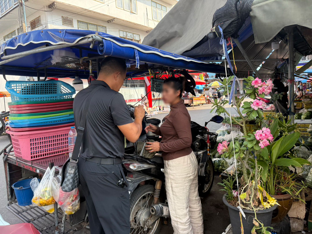 จากการปูพรมตรวจสอบบริเวณร้านขายผักสด พบชาวกัมพูชากำลังยืนขายของอยู่จำนวน 4 คน (ชาย 1 หญิง 3) และพบหญิงชาวกัมพูชาอีก 1 คน ขับขี่รถจักรยานยนต์พ่วงข้างที่ดัดแปลงเป็นรถขายก๋วยเตี๋ยวจอดขายอยู่บริเวณหน้าร้าน รวมเจ้าหน้าที่ควบคุมตัวได้ทั้งหมด 5 ราย