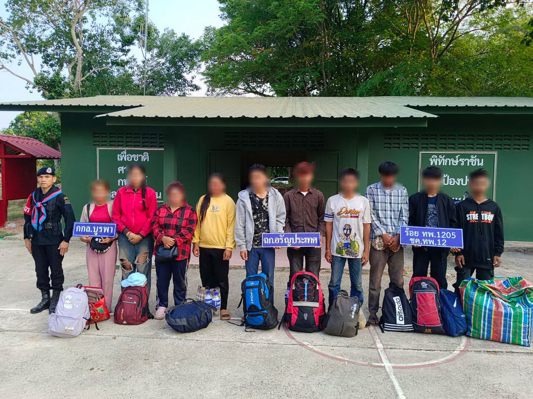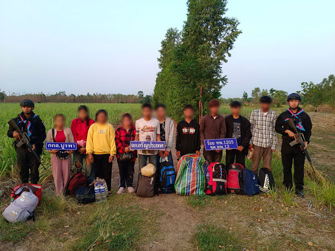 สกัดจับคาไร่อ้อย! กกล.บูรพา รวบ 10 แรงงานกัมพูชาลักลอบข้ามแดนโคกสูง สารภาพหนีภัยแล้งหวังไปทำงานก่อสร้างที่ชลบุรี