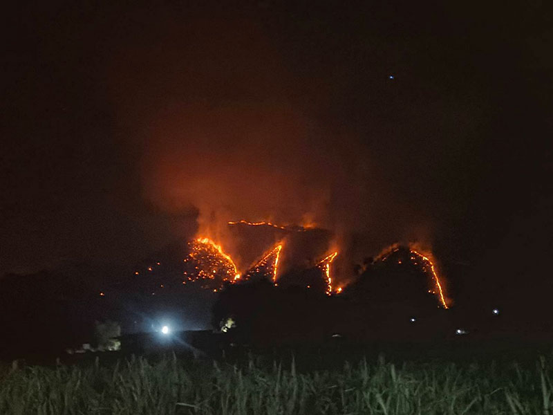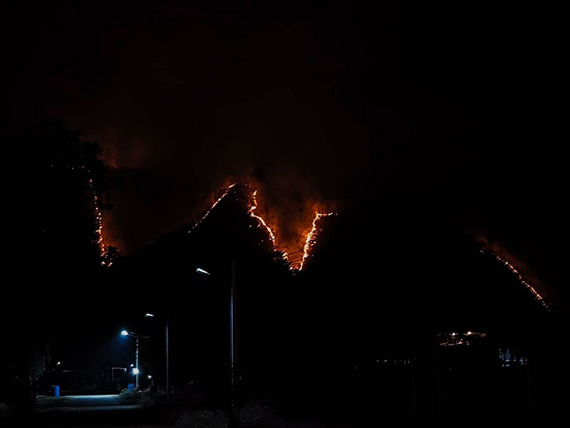 จนถึงเวลาประมาณ 18.45 น. เจ้าหน้าที่สามารถดับไฟได้เป็นบางส่วนแล้ว แต่เนื่องจากพื้นที่ภูเขาที่ถูกไฟไหม้นั้นเป็นดงหญ้าแห้งและใบไม้แห้งหนาบนสันเขา และพื้นที่เป็นภูเขาสูงชัน จึงใด้ทำแนวกันไฟบริเวณสันเขาและแนวขอบล่างของภูเขาโดยรอบแนวไฟไว้ได้หมดแล้ว ต่อมาเวลาประมาณ 19.50 น. จึงได้ถอนกำลังเจ้าหน้าที่และชุดเฝ้าระวังไฟป่าออกจากพื้นที่ และได้จัดกำลังเจ้าหน้าที่จำนวน 6 คน เฝ้าระวังสังเกตการณ์ในพื้นที่อย่างต่อเนื่อง