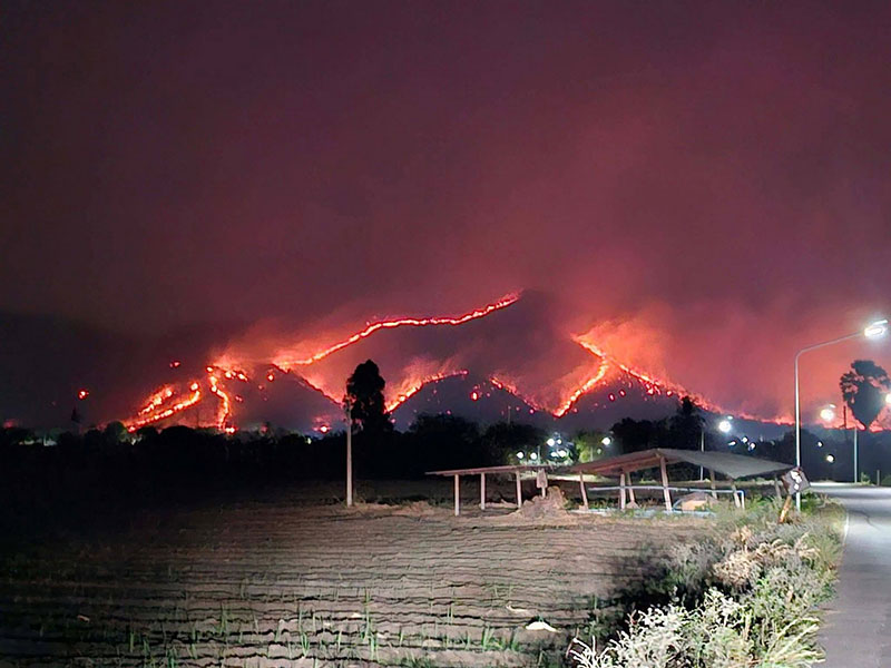 ผู้สื่อข่าวรายงานว่า เมื่อวันที่ 22 เม.ย.ที่ผ่านมา โลกโซเชียลได้นำภาพเหตุการณ์การเกิดไฟไหม้บนเขาสลักพระ เขตรักษาพันธุ์สัตว์ป่าสลักพระ ท้องที่ ต.วังด้ง อ.เมือง จ.กาญจนบุรี มาโพสต์ลงในเฟสบุ๊ก ซึ่งภาพดังกล่าวเป็นภาพที่น่าสะพรึงกลัวเป็นอย่างมาก เนื่องจากภูเขาทั้งลูกถูกไฟไหม้อย่างรุนแรงจนเป็นสีแดงฉานคล้ายกับภูเขาไฟระเบิด ราวาสีแดงพุ่งขึ้นบนท้องฟ้าแล้วไหลลงมาตามยอดเขา โดยมีผู้เข้าไปแสดงความคิดเห็นกันเป็นจำนวนมาก