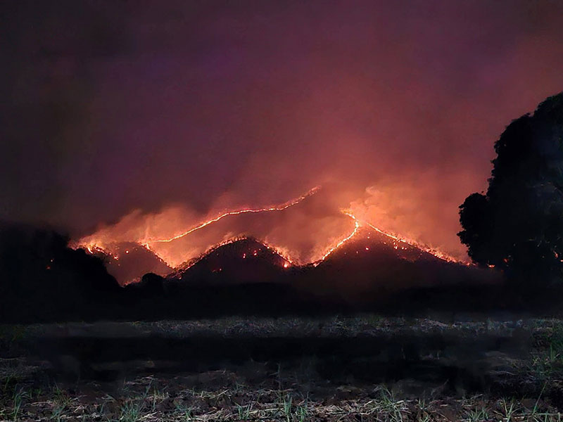 ในเวลา 22.30 น.หลังจากที่นายราชันย์ บัวตรี ผู้อำนวยการสำนักบริหารพื้นที่อนุรักษ์ที่ 3 (บ้านโป่ง)ได้รับรายงาน จึงเดินทางลงพื้นที่ พร้อมด้วย นายฑรัท เหลืองสอาด รองผู้ว่าราชการจังหวัดกาญจนบุรี และ ผู้นำชุมชนที่เกี่ยวข้อง เพื่อตรวจสอบสถานการณ์ พบว่า กลุ่มไฟ ดังกล่าว มีทิศทางมุ่งหน้าไปทางแนวกันไฟที่เจ้าหน้าที่ได้จัดทำไว้ตั้งแต่ช่วงเช้า คาดว่าเมื่อกลุ่มไฟไปชนแนวกันไฟแล้ว ก็จะสามารถควบคุมสถานการณ์ได้