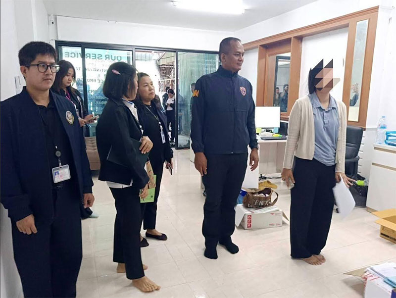 นอกจากนี้ เจ้าหน้าที่ยังพบความผิดปกติภายในอาคารชั้น 2 ซึ่งถูกจัดฉากเป็น “ออฟฟิศผี” มีการนำคอมพิวเตอร์ที่ไม่สามารถใช้งานได้มาวางจัดฉากให้ดูเสมือนสำนักงานจริง พร้อมติดตั้งป้ายชื่อบริษัทต่าง ๆ กว่าร้อยรายการ เพื่ออำพรางการตรวจสอบ