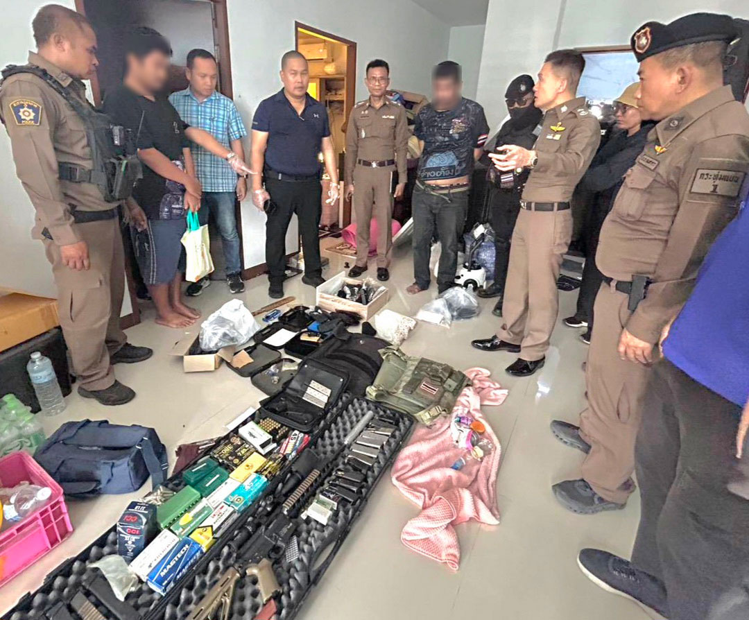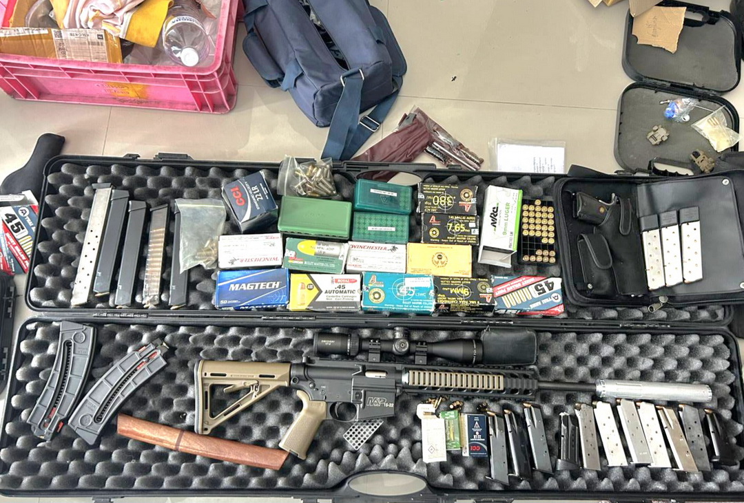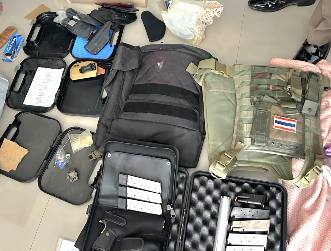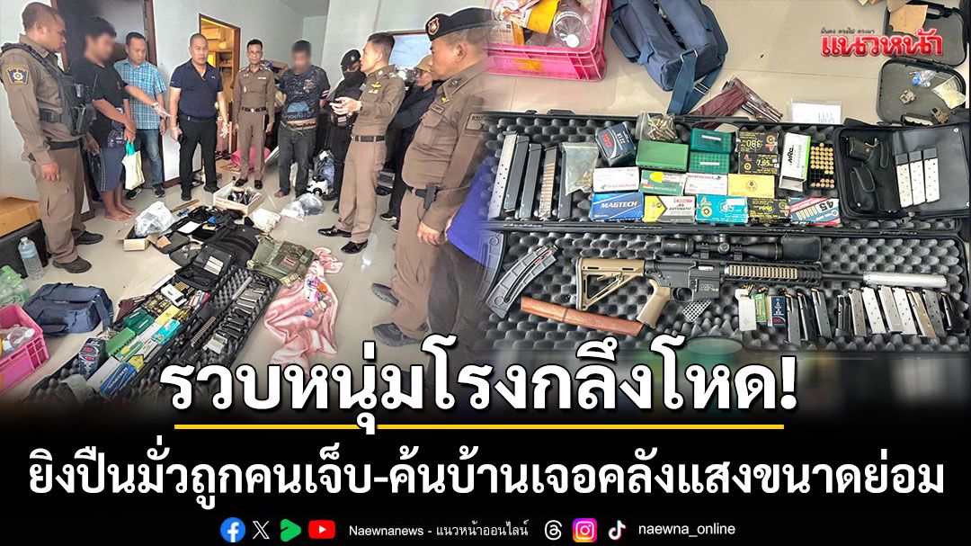 บุกรวบหนุ่มโรงกลึงโหด! ซ้อมยิงปืนจนกระสุนแฉลบเจาะขาหนุ่มเมียนมา ผงะค้นบ้านเจอกองทัพปืนดัดแปลง-เสื้อเกราะ-ยาบ้า