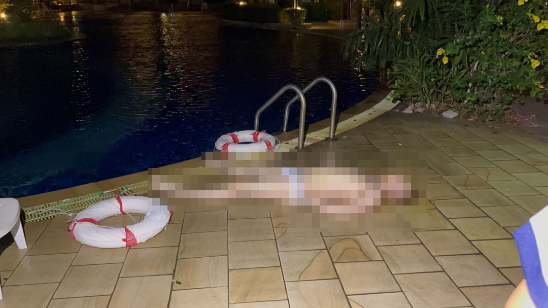 ในที่เกิดเหตุบริเวณริมสระว่ายน้ำที่มีความลึกประมาณ 2 เมตร เจ้าหน้าที่พบร่าง Mr. SHAO อายุ 21 ปี สัญชาติจีน ในสภาพสวมกางเกงชั้นในเพียงตัวเดียว เจ้าหน้าที่กู้ภัยฯ ได้เร่งทำหัตถการปั๊มหัวใจ (CPR) อย่างต่อเนื่องเพื่อยื้อชีวิตอย่างสุดความสามารถแต่ไม่เป็นผล นักท่องเที่ยวรายดังกล่าวเสียชีวิตในเวลาต่อมา