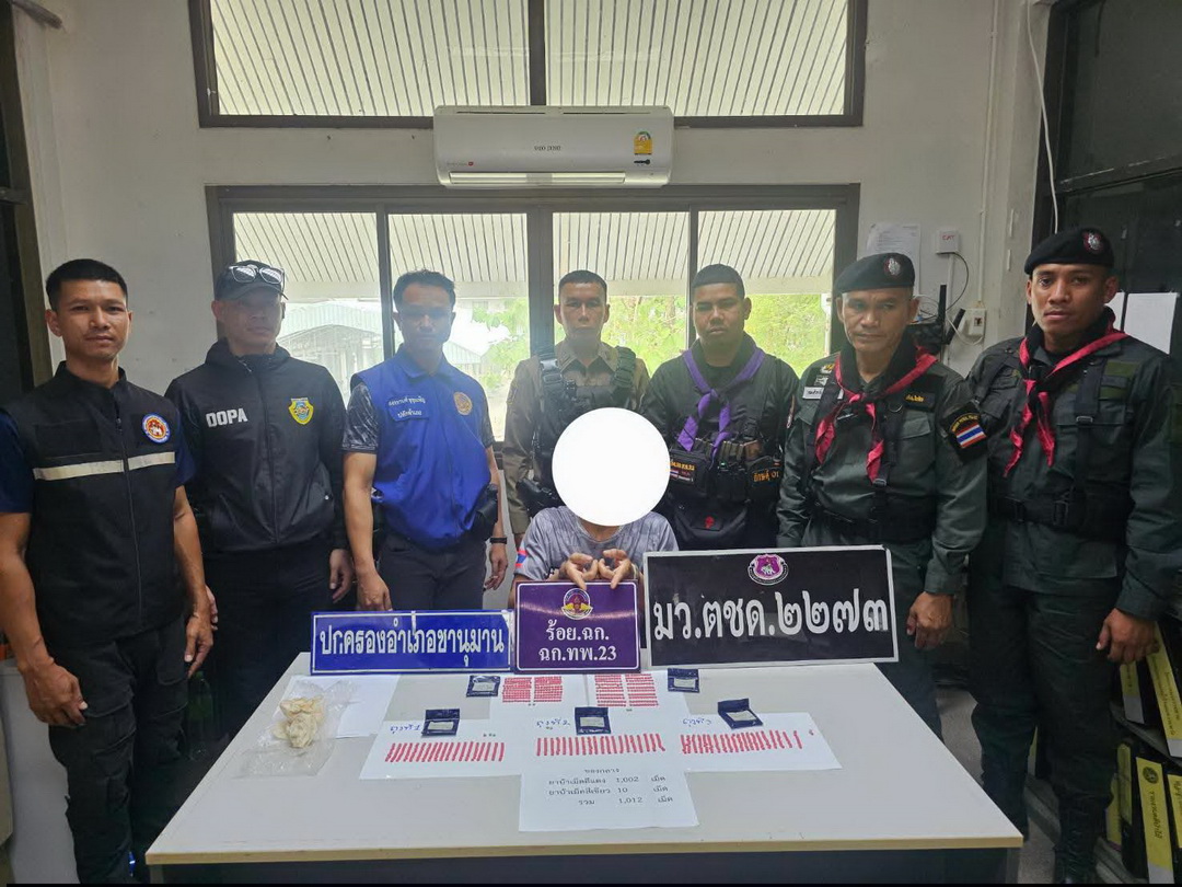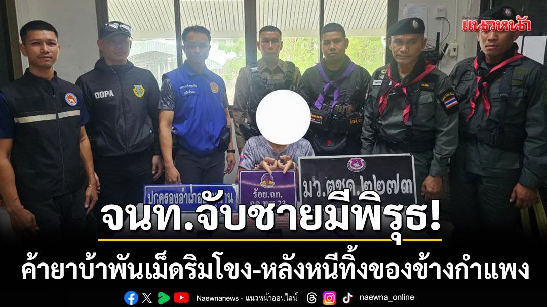 สกัดจับชายพิรุธ! ตร.ชานุมานสนธิกำลังทหารพราน รวบตัวค้ายาบ้าพันเม็ดริมฝั่งโขง หลังวิ่งหนีทิ้งของกลางข้างกำแพง