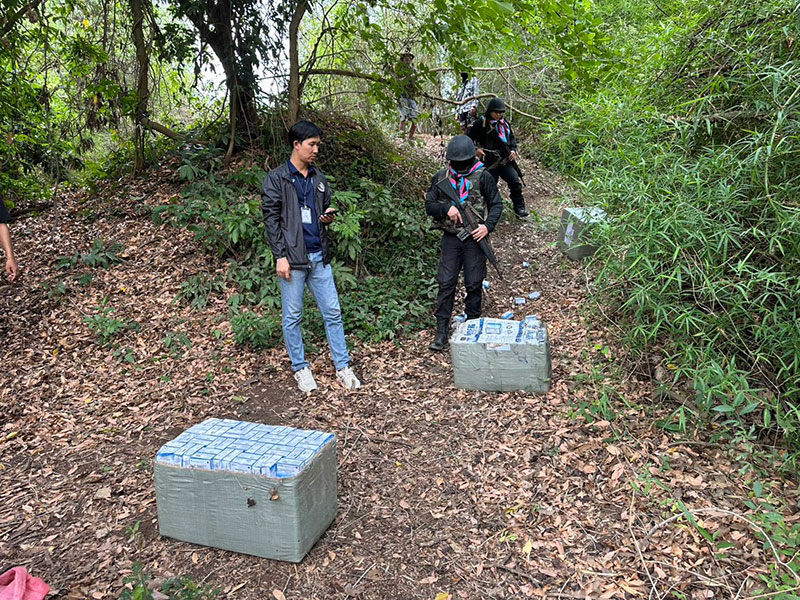 26 เมษายน 2569 ผู้สื่อข่าวรายงานว่า เมื่อวันที่ 25 เมษายน กกล.บูรพา โดย ฉก.อรัญประเทศ ร่วมกับ ชค.ทพ.12 นำกำลังพล ร้อย ทพ.1206 และ ชุด ลว.ฉก.อรัญประเทศ ออกลาดตระเวนเพื่อป้องกัน และสกัดกั้นการกระทำผิดกฎหมายในพื้นที่รับผิดชอบ บริเวณเส้นทางธรรมชาติ ท้ายบ้านเนินสมบูรณ์ ม.12 ต.คลองน้ำใส อ.อรัญประเทศ จ.สระแก้ว ได้ตรวจพบบุคคลต้องสงสัย ไม่ทราบสัญชาติ จำนวน 2 คน (ชาย) กำลังแบกกล่องสีเทาขนาดใหญ่ รวม 2 กล่อง ลักลอบข้ามแดนจากฝั่งกัมพูชาเข้ามาในประเทศไทย