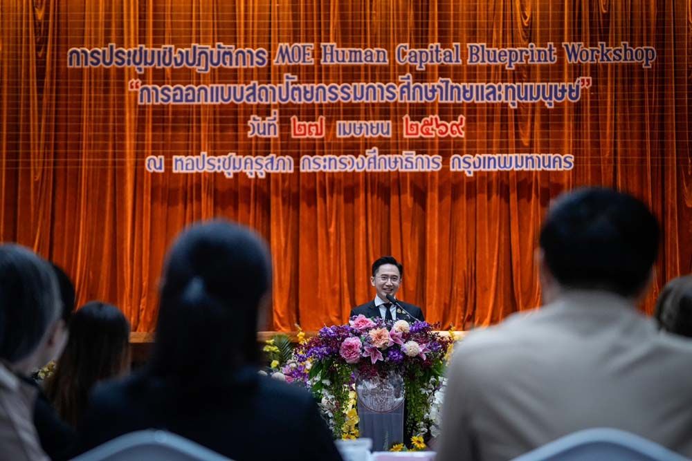 วันที่ 27 เม.ย. 2569 ศ.ดร.ยศชนัน วงศ์สวัสดิ์ รองนายกรัฐมนตรี และรัฐมนตรีว่าการกระทรวงการอุดมศึกษา วิทยาศาสตร์ วิจัยและนวัตกรรม (อว.) เป็นประธานการประชุม MOE Human Capital Blueprint Workshop "การออกแบบสถาปัตยกรรมการศึกษาไทยและทุนมนุษย์" ณ หอประชุมคุรุสภา กระทรวงศึกษาธิการ โดยมี นายประเสริฐ จันทรรวงทอง รัฐมนตรีว่าการกระทรวงศึกษาธิการ (รมว.ศธ.) นายอัครนันท์ กัณณ์กิตตินัน รัฐมนตรีช่วยว่าการกระทรวงศึกษาธิการ(รมช.ศธ.) นายสุเทพ แก่งสันเทียะ ปลัดศธ. พร้อมผู้บริหารระดับสูง ศธ. ตลอดจนผู้บริหารภาครัฐ เอกชน และภาคประชาสังคม เข้าร่วม