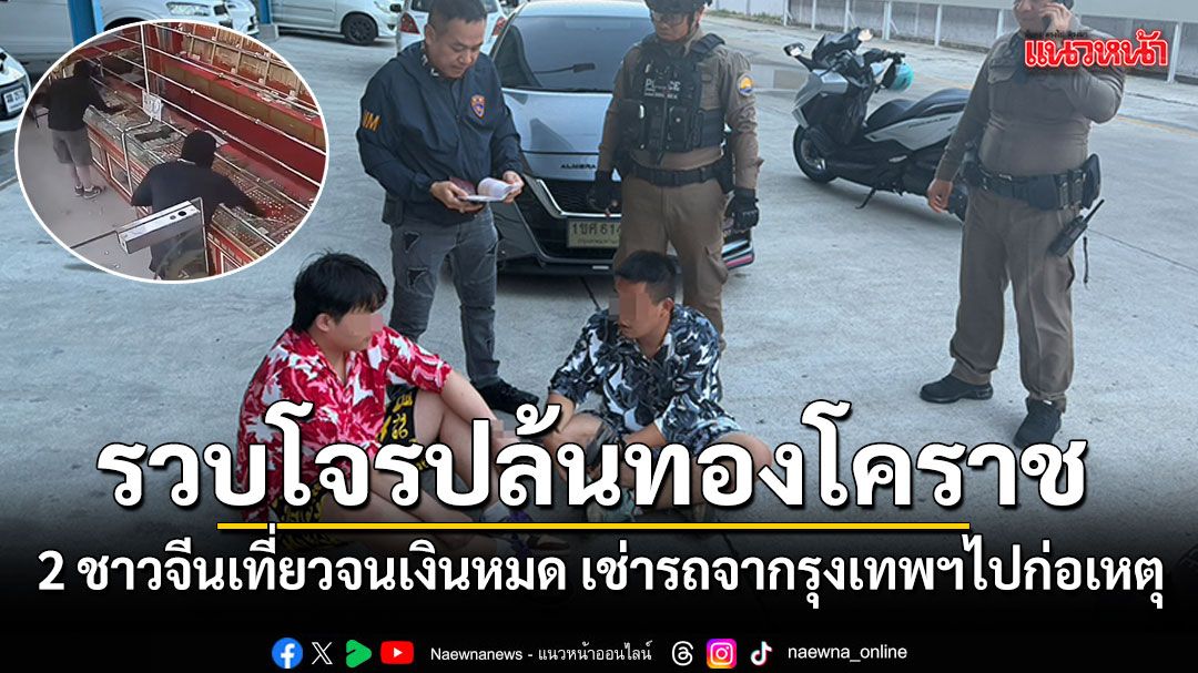 โคราชรวบ 2 โจรสวมไอ้โมงบุกร้านชิงทองพบเป็นชาวจีนสารภาพเที่ยวจนเงินหมดเช่ารถยนต์จากกรุงเทพฯ ไปก่อเหตุปล้นร้านทองที่โคราช