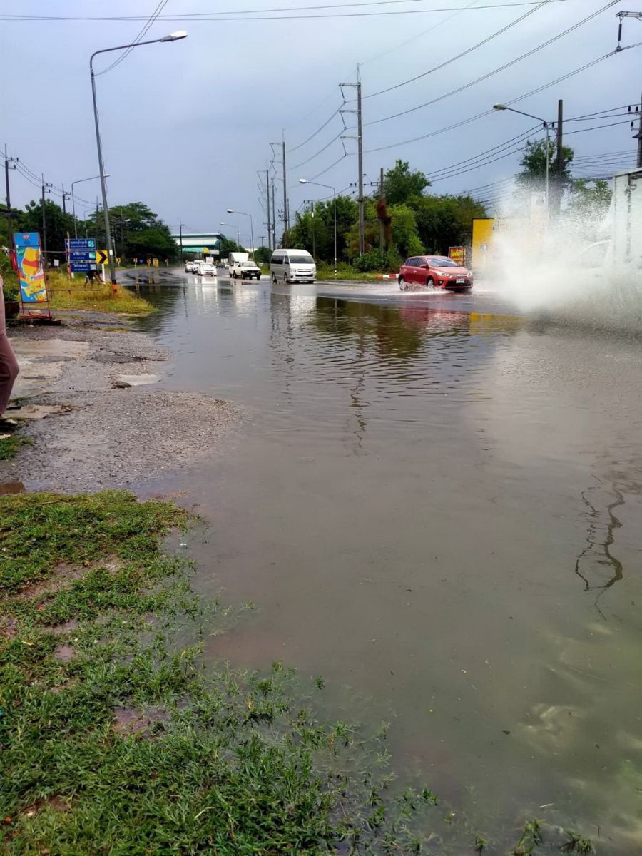 ที่ อำเภอเมืองอำนาจเจริญ ลมพายุได้หอบเอาเมฆฝนปกคลุมจนท้องฟ้ามืดครึ้มตลอดทั้งวัน ส่งผลให้ถนนอรุณประเสริฐ (เส้นทางหลักไปกรุงเทพฯ) โดยเฉพาะบริเวณหน้าโรงพยาบาลอำนาจเจริญ และแยกบ้านดอนแดง เกิดน้ำท่วมขังผิวการจราจร ซึ่งเป็นปัญหาซ้ำซากทุกปี เบื้องต้นหน่วยงานที่เกี่ยวข้องได้นำเครื่องสูบน้ำขนาดใหญ่เข้าเร่งระบายน้ำเพื่อเปิดเส้นทางจราจรแล้ว
