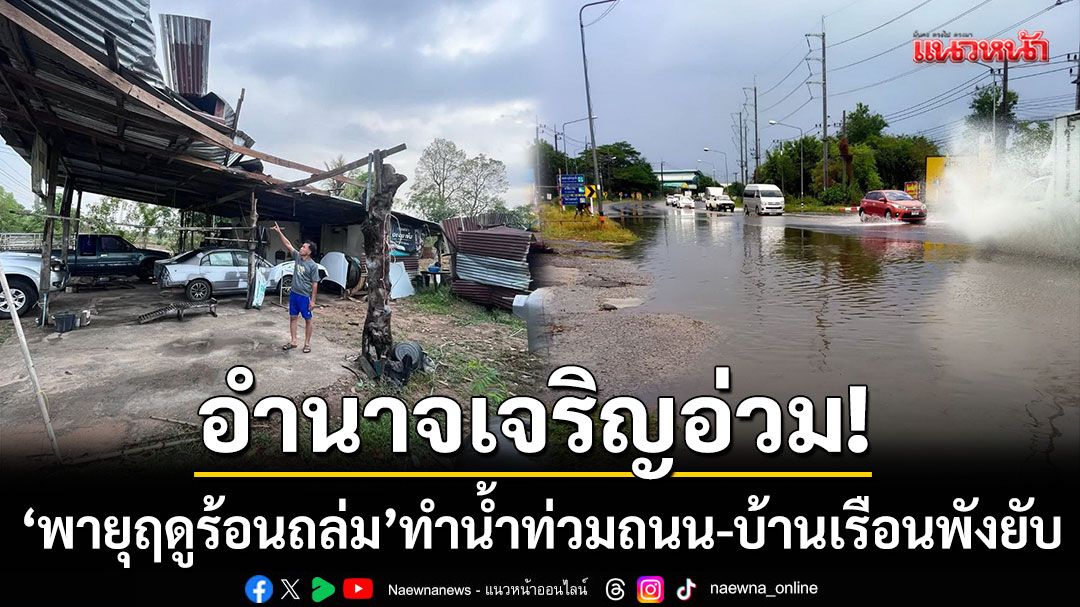 อำนาจเจริญอ่วม! พายุฤดูร้อนถล่มทั้งคืน ทำเสาไฟล้ม-น้ำท่วมถนน บ้านเรือนและคอกสัตว์พังยับหลายอำเภอ