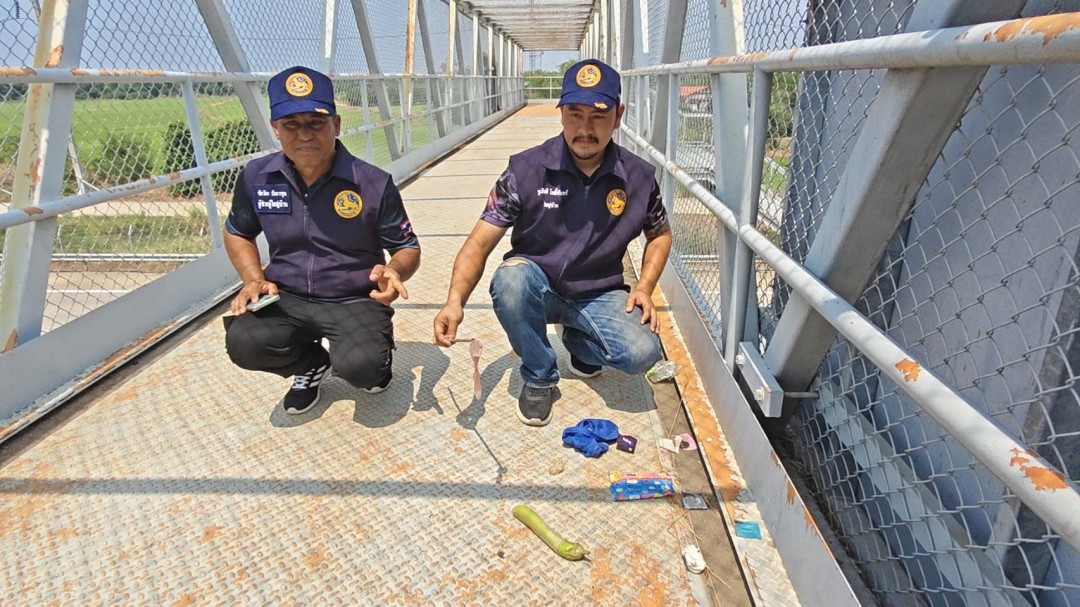 จากการตรวจสอบบนสะพานลอย เจ้าหน้าที่ถึงกับตะลึงเมื่อพบหลักฐานที่แสดงถึงกิจกรรมทางเพศจำนวนมาก อาทิ ถุงยางอนามัยที่ใช้แล้ว กางเกงชั้นใน ซองเจลหล่อลื่น กระดาษทิชชูเปียก และที่น่าตกใจคือพบมะเขือยาวที่ถูกสวมด้วยถุงยางอนามัยวางทิ้งไว้ริมทางเดิน โดยคาดว่ากลุ่มคนร้ายน่าจะเข้ามาใช้พื้นที่ในช่วงกลางดึกที่ผ่านมา เนื่องจากตนมีการตรวจตราเป็นประจำและเพิ่งพบสิ่งของเหล่านี้